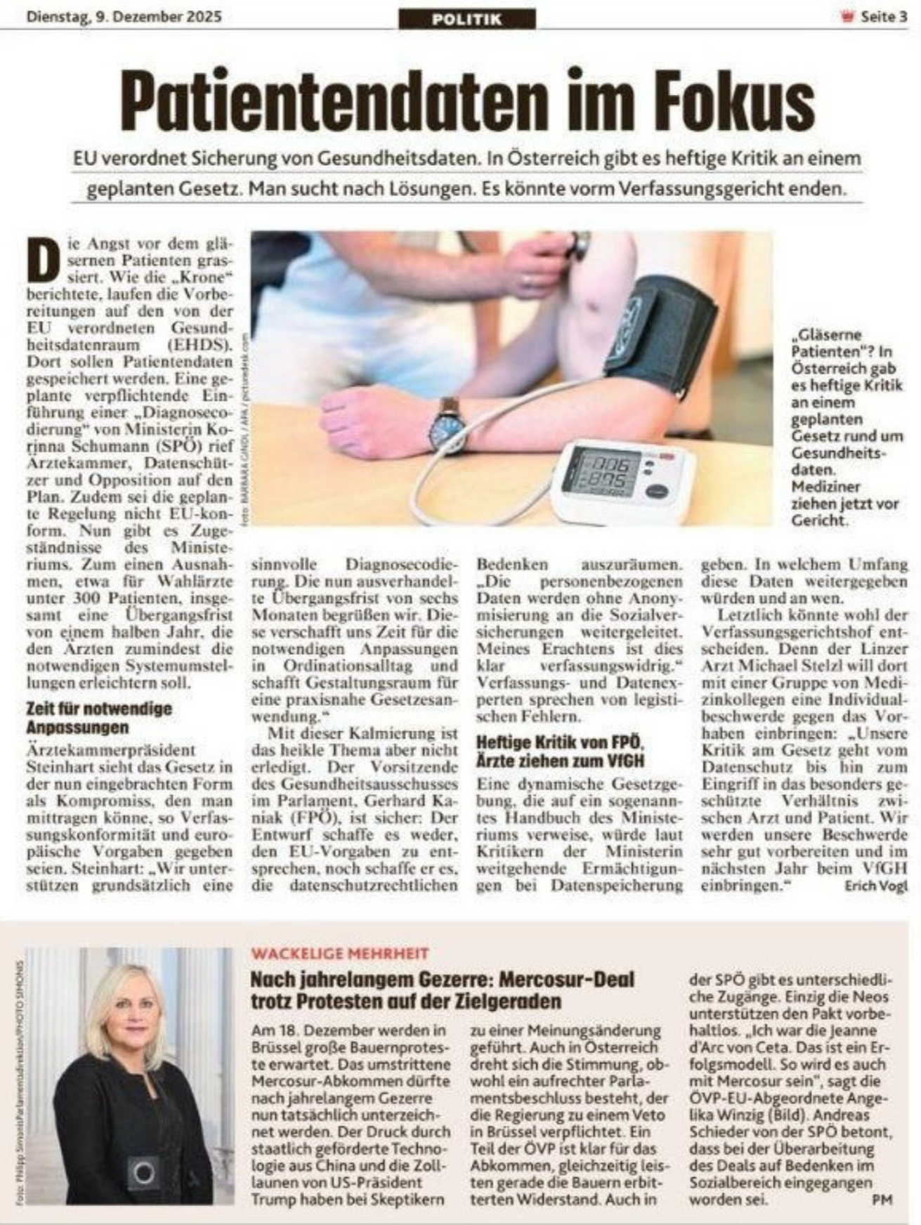 ÄRZTE FÜR ÄRZTE. Wir erledigen das, wozu sich andere in der Ärztekammer nicht trauen. Quelle: KRONE, 9.12.2025 Seite 3